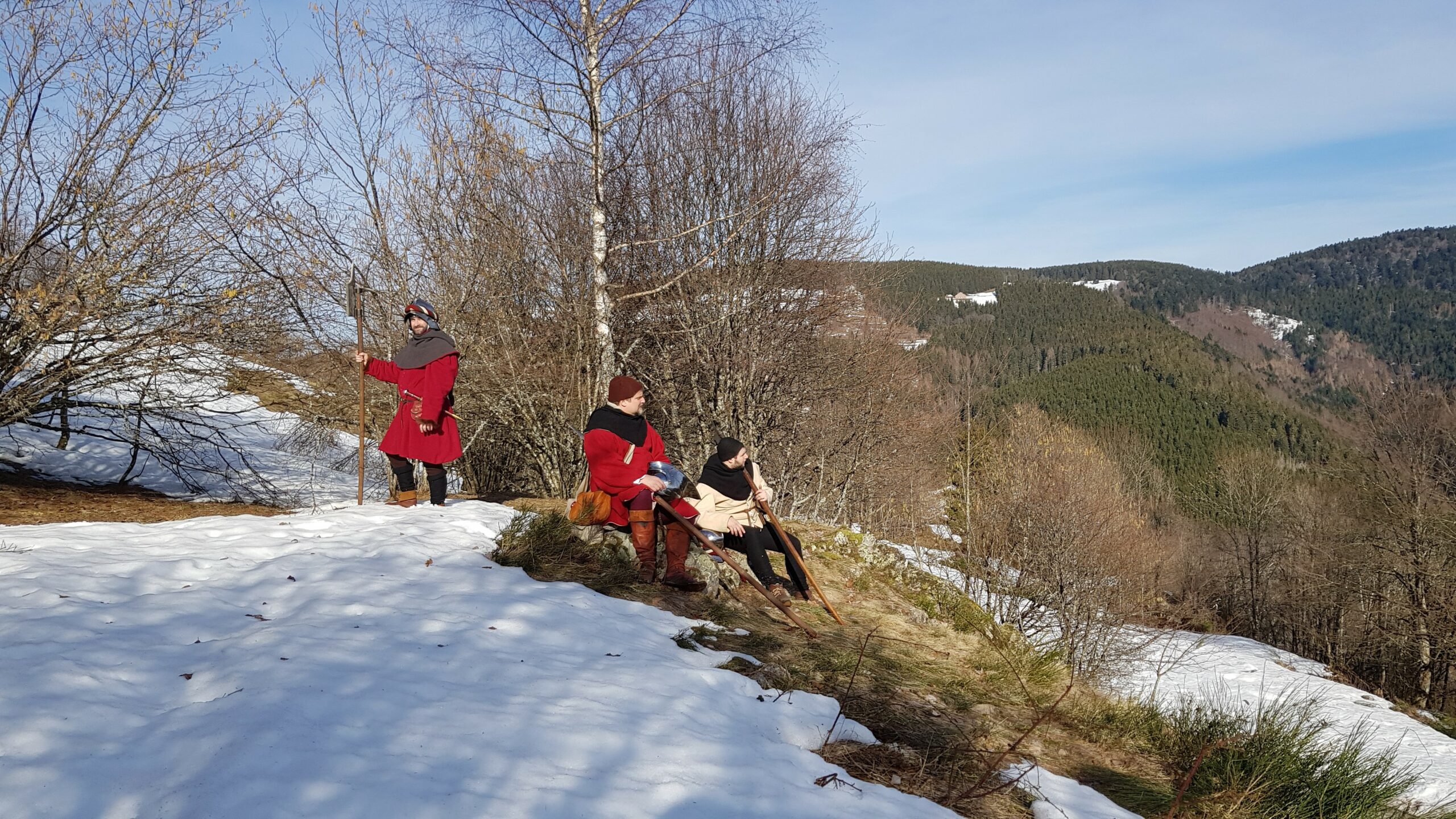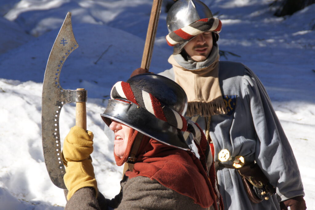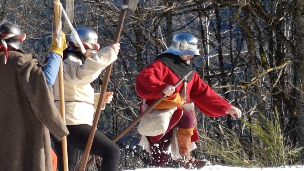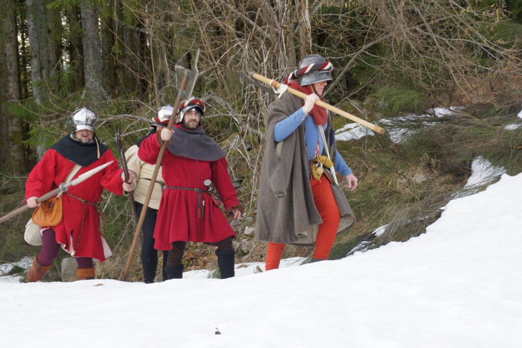 En ce mois de décembre 1476, nous avons profité d’une éclaircie pour franchir un col Vosgien. L’armée doit aller au plus vite à Nancy pour rompre le siège tenu par les Bourguignons.