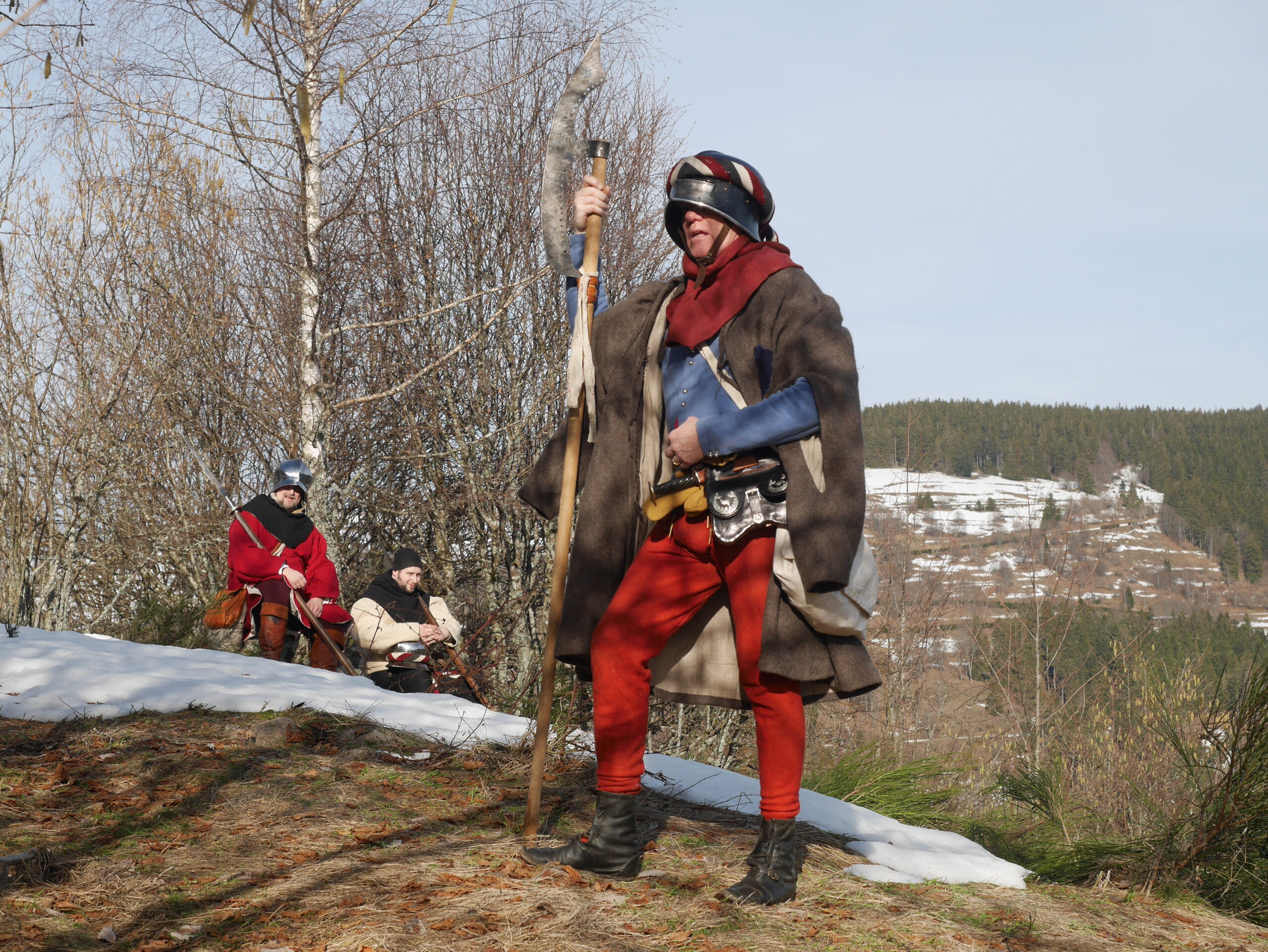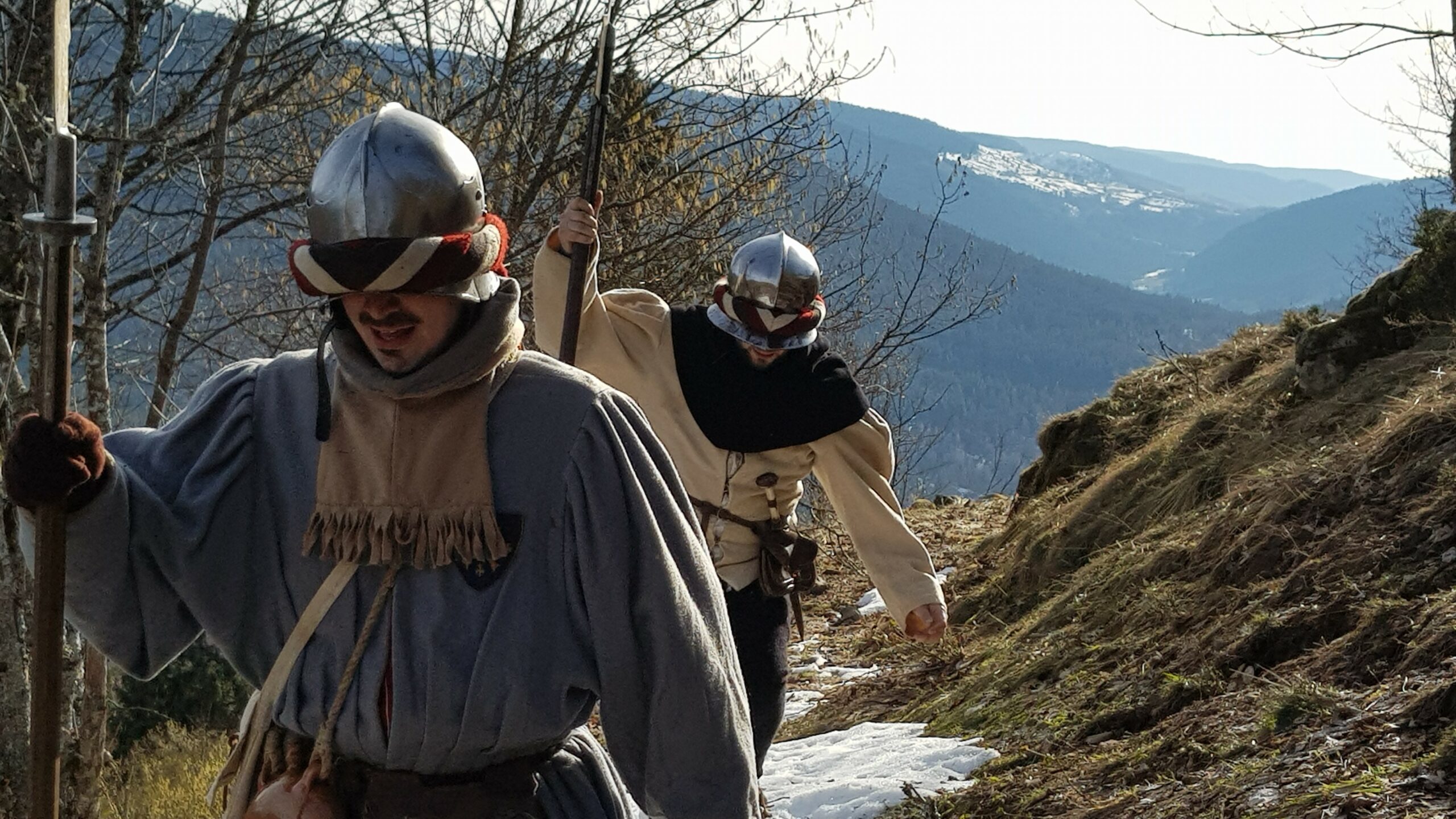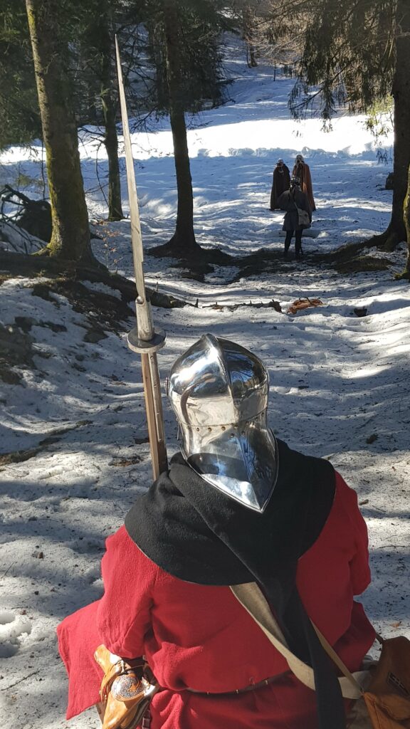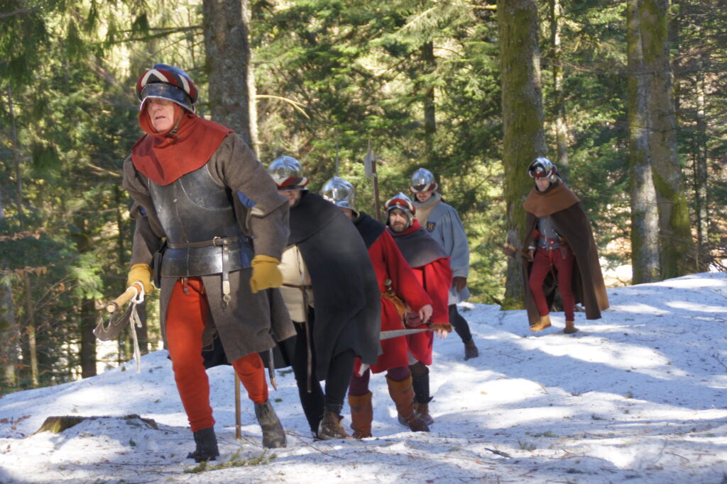 En ce mois de décembre 1476, nous avons profité d’une éclaircie pour franchir un col Vosgien. L’armée doit aller au plus vite à Nancy pour rompre le siège tenu par les Bourguignons.